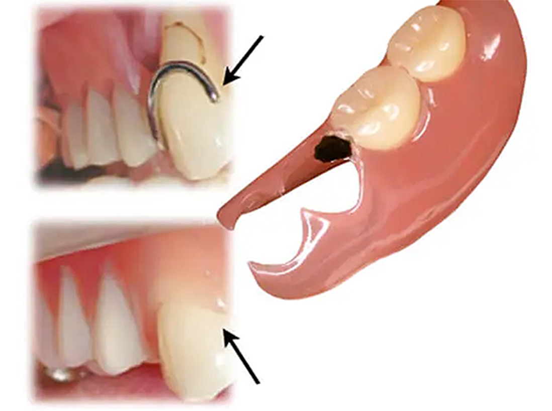 クラスプ部分を義歯床と一体の樹脂で製作。自然な外観の審美性に